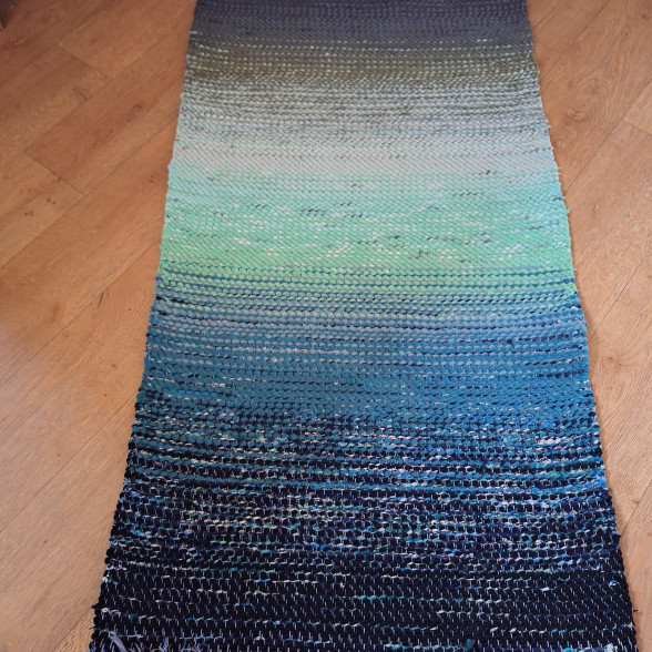 No krāsainiem diegiem austs grīdas celiņš vai dīvāna pārklājs kā daļiņa no dabas Jūsu interjerā. Izmērs : 1,98 m x 0,73 m. Materiāls ir viegls, bet izturīgs, kā arī viegli kopjams – piemērots saudzīgai mazgāšanai. Šis roku darbs ir radīts no otrreiz pārstrādāta tekstila, diegiem un dzijas, apvienojot ilgtspēju, estētiku un praktiskumu. #Grīdas_celiņš #austs_grīdas_celiņš #pārstrādāts_materiāls #dizaina_paklājs