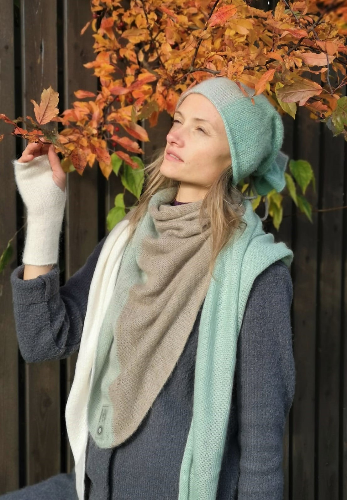 Materiāls: mohera 70%, zīds 15%, poliamīds 15%