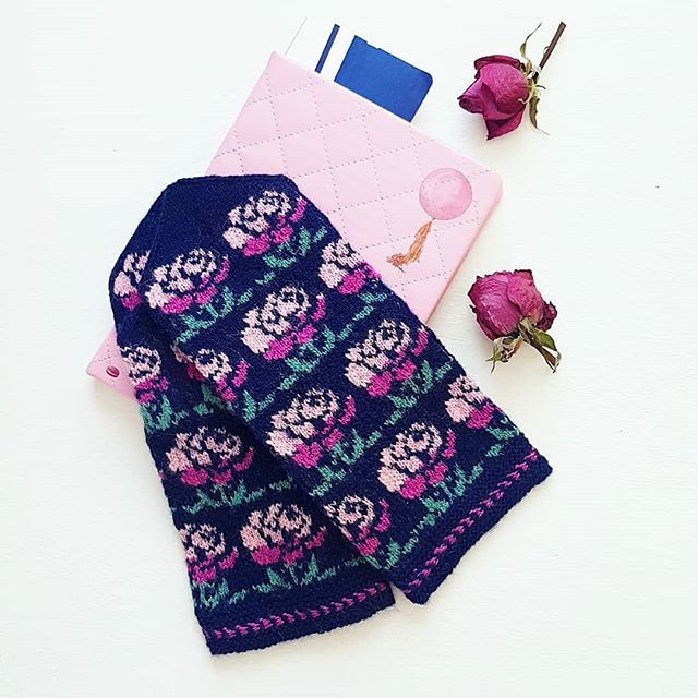 Sievišķīgi cimdi ar rožu rakstu. Adīti ar rokām no 100% vilnas dzijas. Viens standarta sieviešu rokas izmērs.