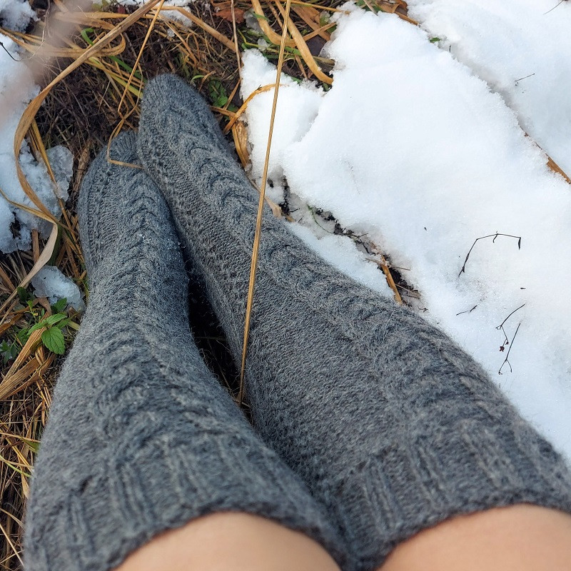 Šīs zeķes ir tieši tās, kuras Jūs meklējāt! Garās zeķes līdz celim ir godu zeķes, tā ir rakstu dažādība, elegance un skaistums, ar tām var ne tikai sasildīt kājas, bet arī acis un sirdi priecēt! Zeķes adītas no Drops karisma vilnas dzijas, krāsa pelēka (izmērs 38/40).