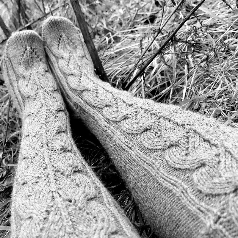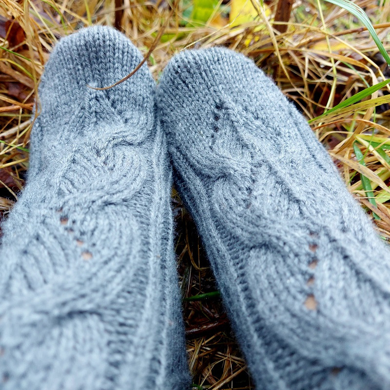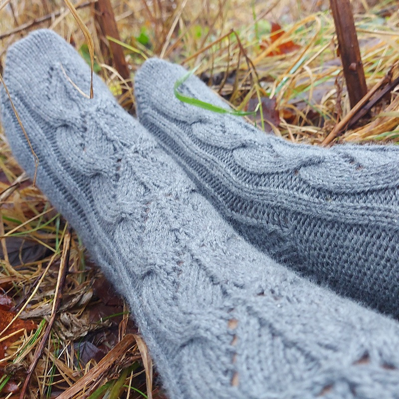 Šīs zeķes ir tieši tās, kuras Jūs meklējāt! Pusgarās zeķes līdz celītim ir godu zeķes, tā ir rakstu dažādība, elegance un skaistums, ar tām var ne tikai sasildīt kājas, bet arī acis un sirdi priecēt! Zeķes adītas no DROPS Daisy dzijas, krāsa pelēka (izmērs 38/39).