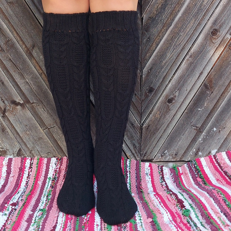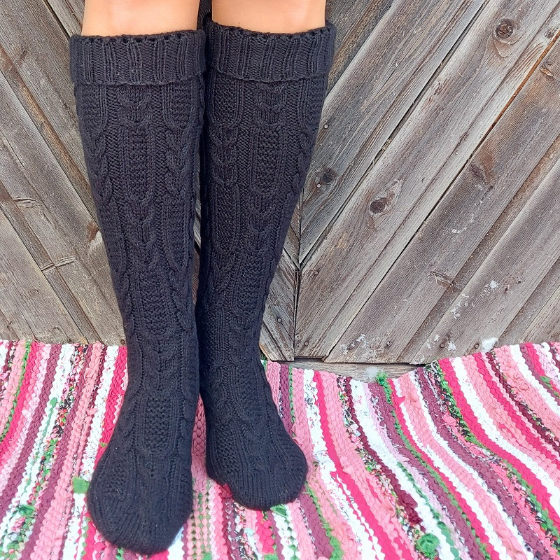 Šīs zeķes ir tieši tās, kuras Jūs meklējāt! Pusgarās zeķes līdz celītim ir godu zeķes, tā ir rakstu dažādība, elegance un skaistums, ar tām var ne tikai sasildīt kājas, bet arī acis un sirdi priecēt! Zeķes adītas no DROPS Daisy dzijas, krāsa melna (izmērs 38/40).