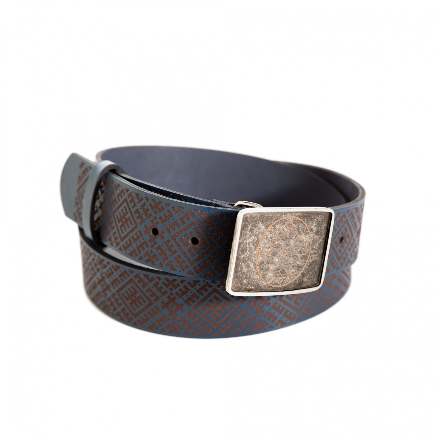 Ādas josta ar latvju rakstiem. Dzīvības zīme. Metāla sprādze ar gravējumu. Jostas platums 40 mm. Biezums 3,7 mm.Ja vēlaties nomainīt sprādzi, tad pie pasūtījuma, papildus informācijā, norādiet lūdzu sprādzes numuru. Ienāc e-veikalā Roku darbs, radīts Latvijā.