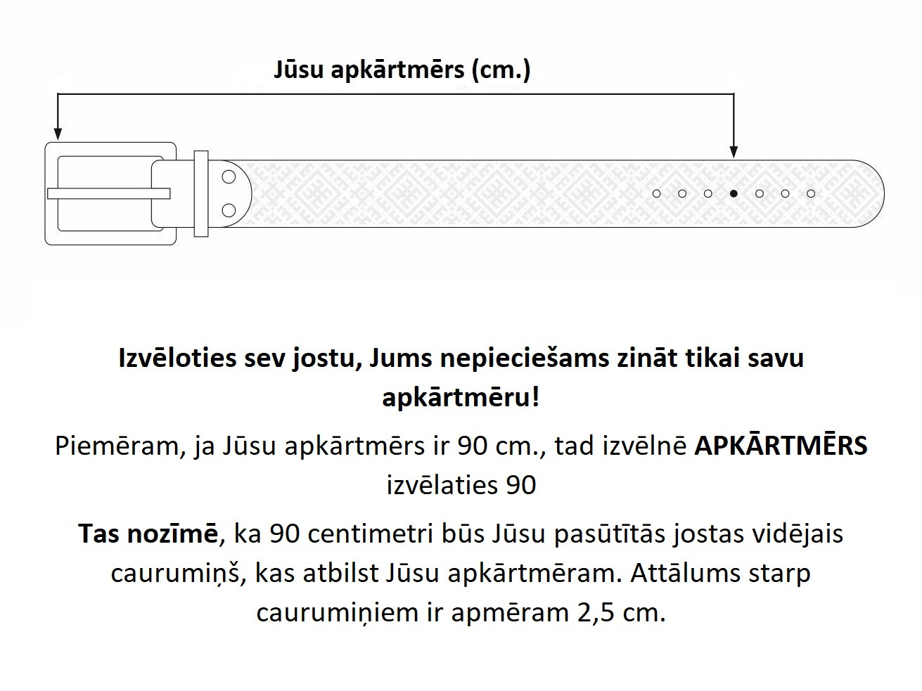 Ādas josta ar latviešu rakstiem. Melnā krāsā, rotāta ar Dzīvības zīmi.Vecināta sudraba krāsas sprādze ar ādas apdari.Jostas platums 40 mm. Biezums 3,7 mm. Roku darbs, radīts Latvijā. Ienāc e-veikalā