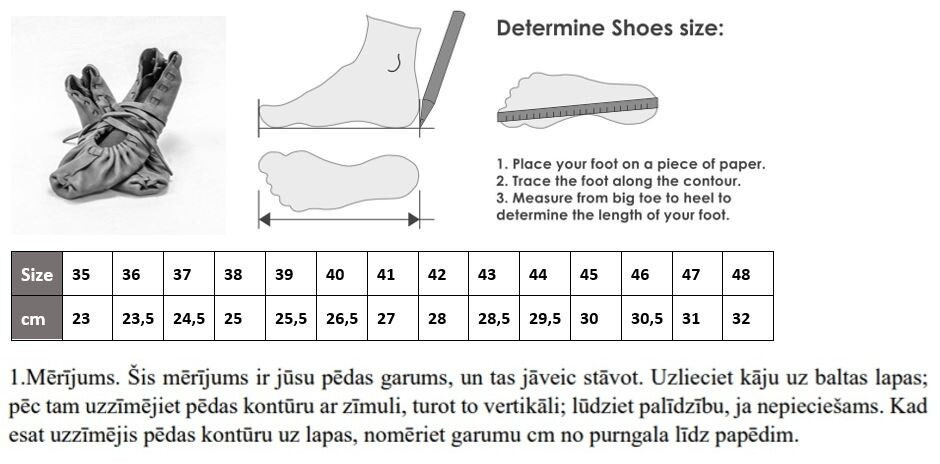 Izmēri savu pēdas garumu un iegūsti pareizo izmēru pieliekot rezervīti zeķei līdz 1 cm.