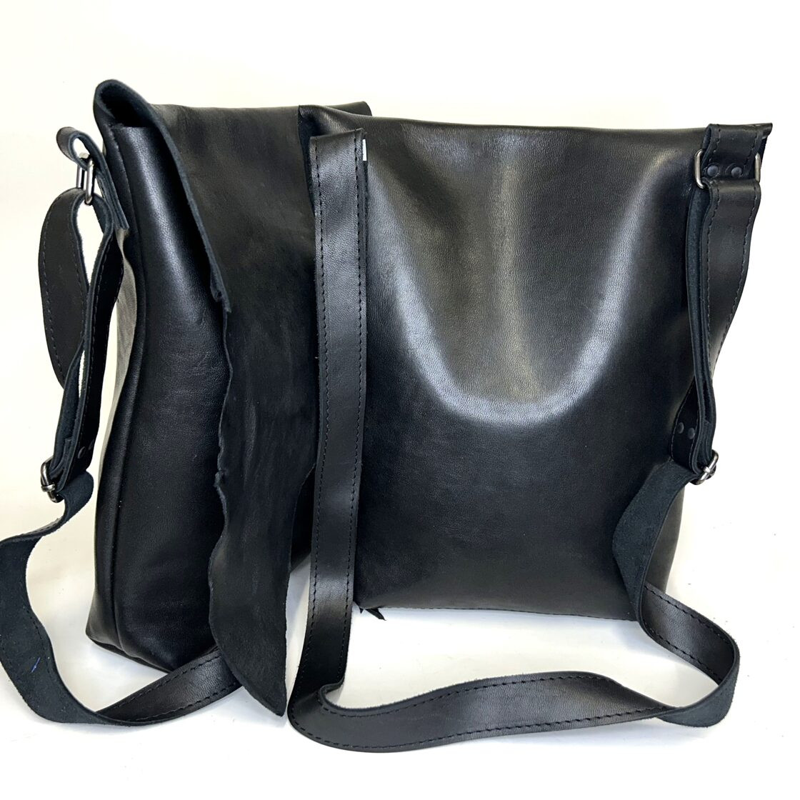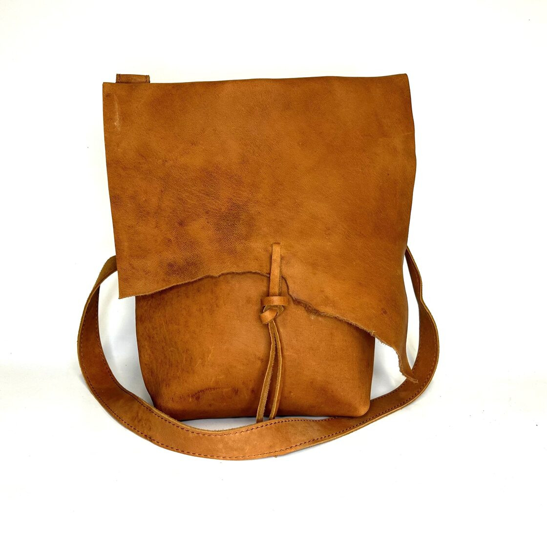 Dabīgās ādas plecu soma ar paplatinātu apakšmalu, mezgla vai pogas aizdari