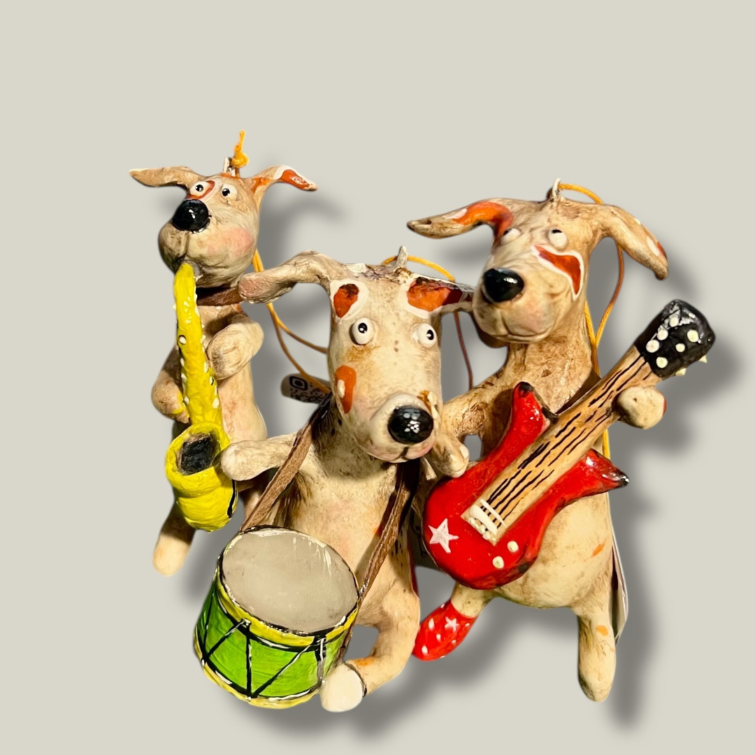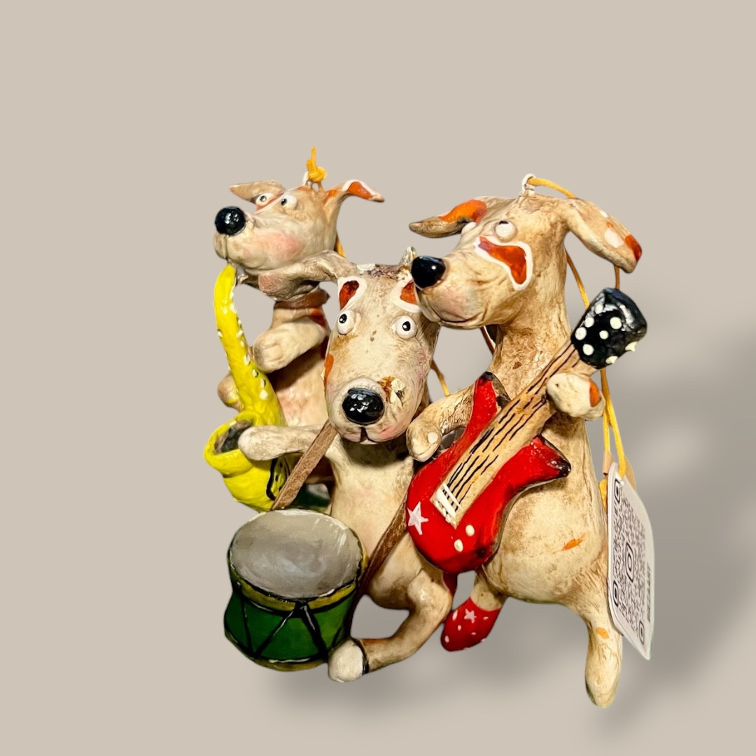 Mini kolekcija — Trīs Suņi Muzikanti (jauktā tehnika ppjemašē+pašcietējošais māls)