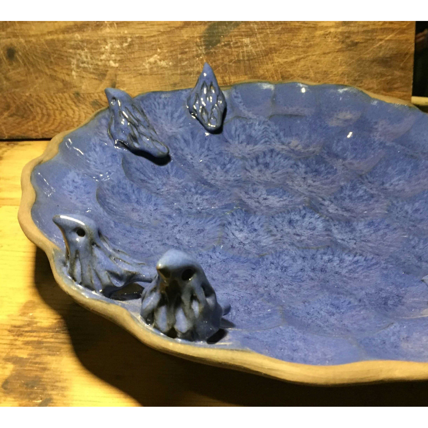 Zili pelēks māla šķīvis.