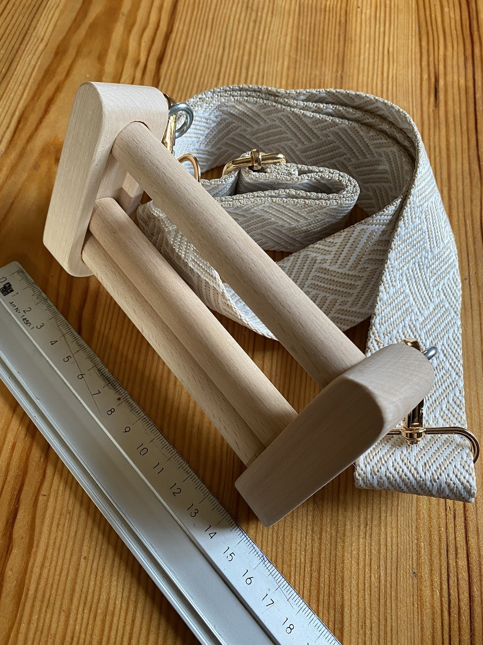 Jostu turētājs izcili nostiprina iesākto jostu tās aušanas laikā. Josta neizslīd jostu turētāja īpašās konstrukcijas dēļ. Nav nepieciešams to papildus aplīmēt ar smilšpapīriem, utt. Komplektācijā ietilpst koka jostu turētājs un ērti piekabināma jostiņa (3,8 cm plata), kas pasaudzē audēja mugurkaulu.