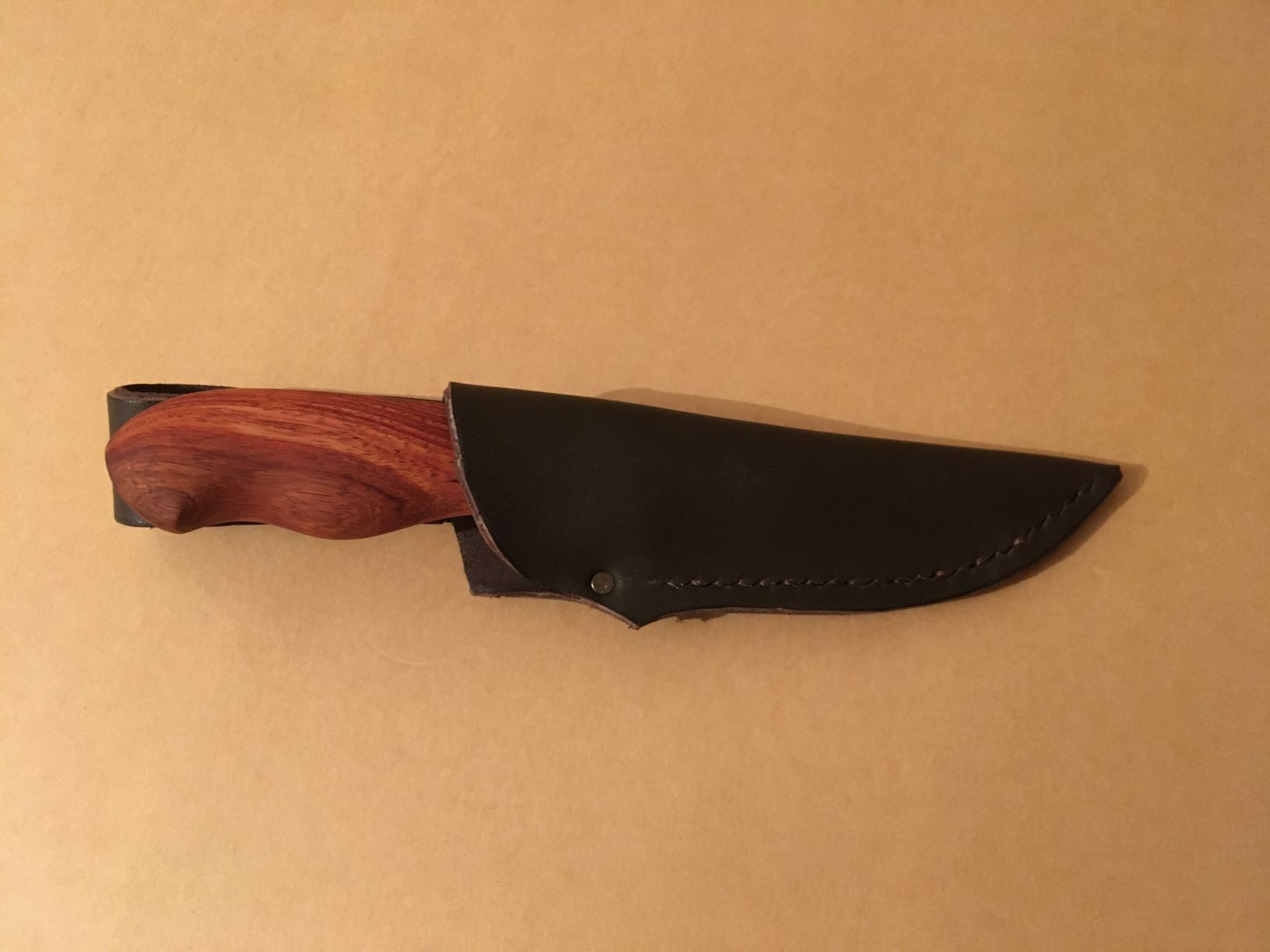 Nazis kalts no zviedru tērauda OVAKO C9918. Laba grieztspēja, ilgi tur asmeni, cietība HRC61.Rokturis no Āfrikas sarkankoka.Asmens izmērs: 10,5 cm garums , platums - 3 cm. Spala izmērs: 13 cm.