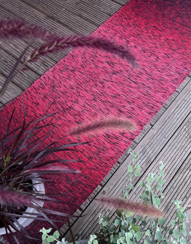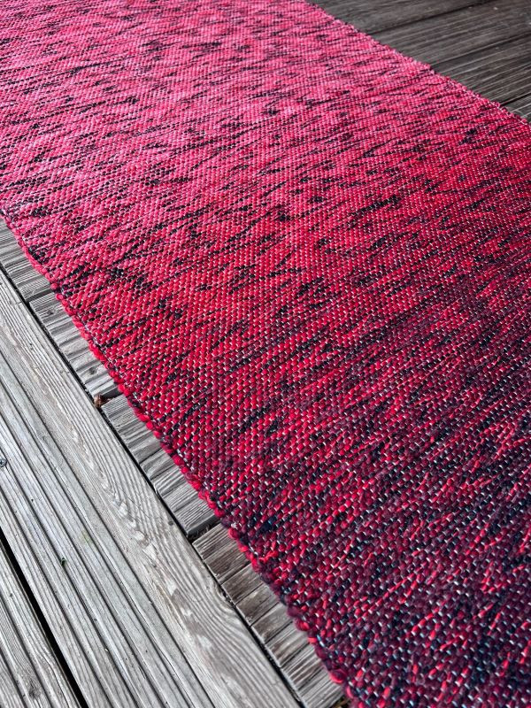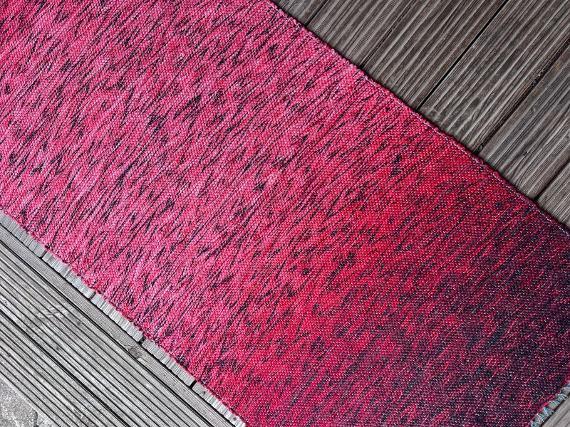 Koši sarkans grīdas celiņš no otrreiz pārstrādātas dzijas kokvilnas - linu velkos. Izmantojams arī kā dīvāna pārklājs. Izmērs : 2,11 m x 0,73 m. #grīdceliņi #austi_grīdas_celiņi #roku_darbs #mājas_tekstils #lupatiņu_paklāji #zero_waste #dizaina_paklāji #otrreizējie_materiali