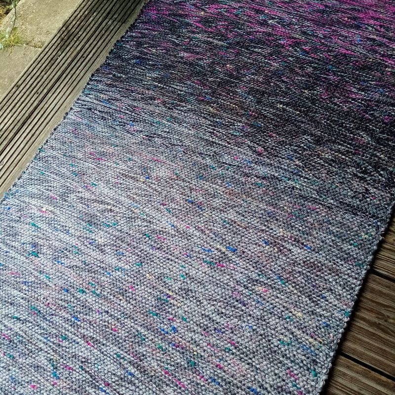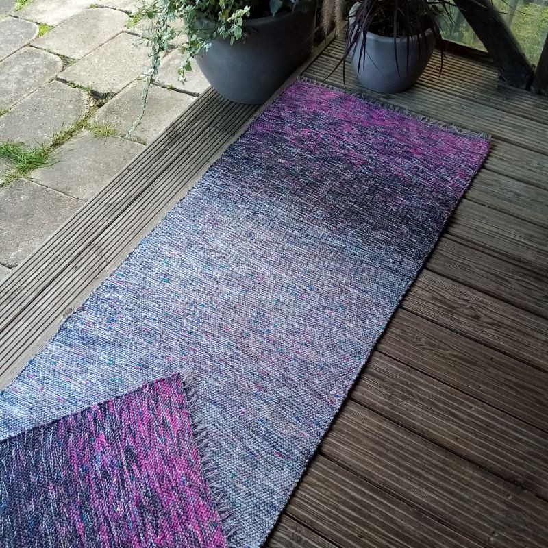 Pelēklillā grīdas celiņš no otrreiz pārstrādātiem diegiem kokvilnas velkos. Izmērs : 2,28 m x 0,73 m. #grīdceliņi #austi_grīdas_celiņi #roku_darbs #mājas_tekstils #lupatiņu_paklāji #zero_waste #dizaina_paklāji #otrreizējie_materiali