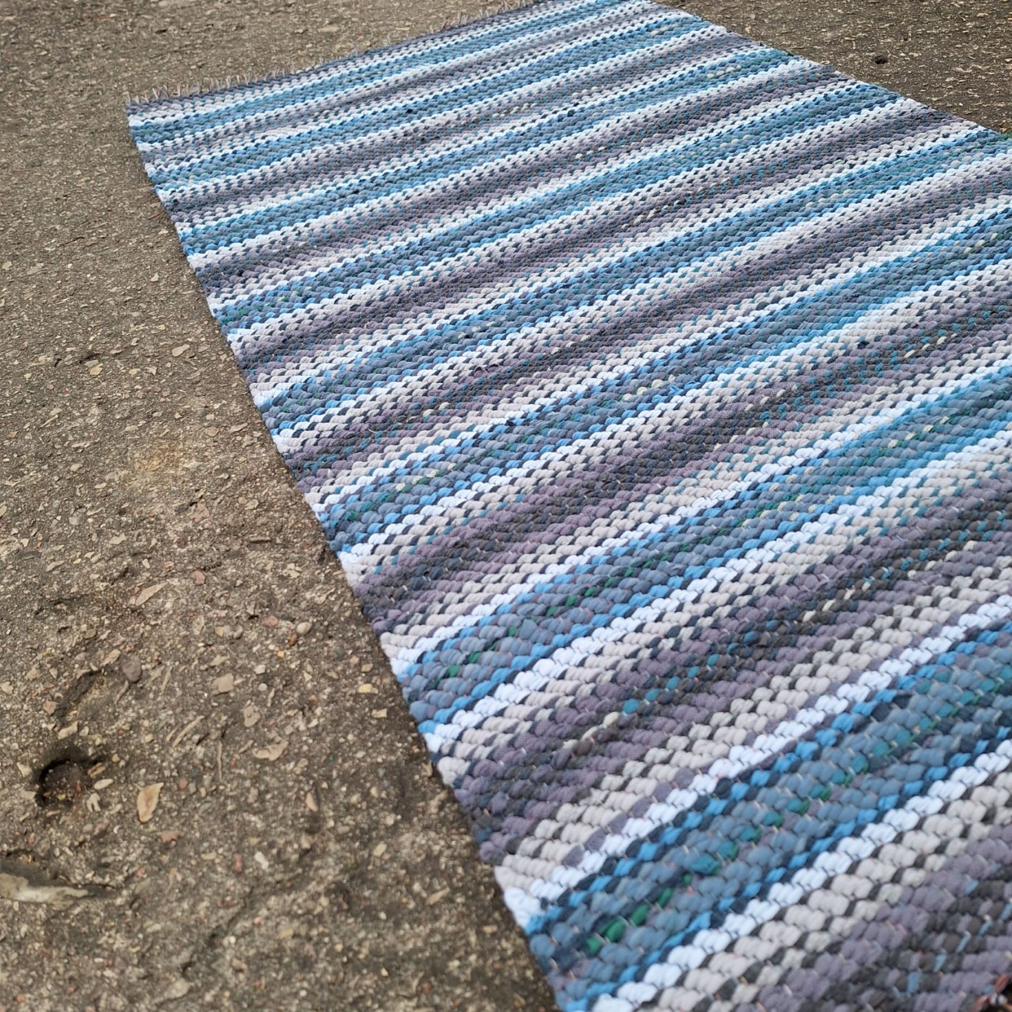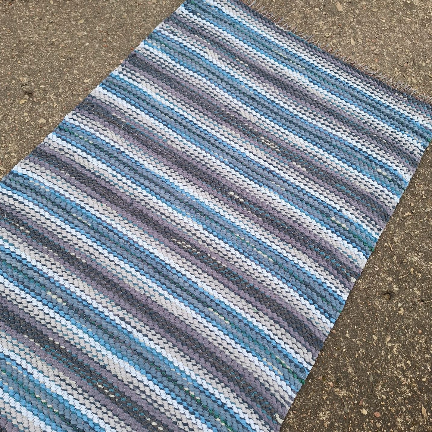 Neliels austs lupatu paklājiņš pelēki- dūmakaini zilos toņos. 1.20m x 0.68m