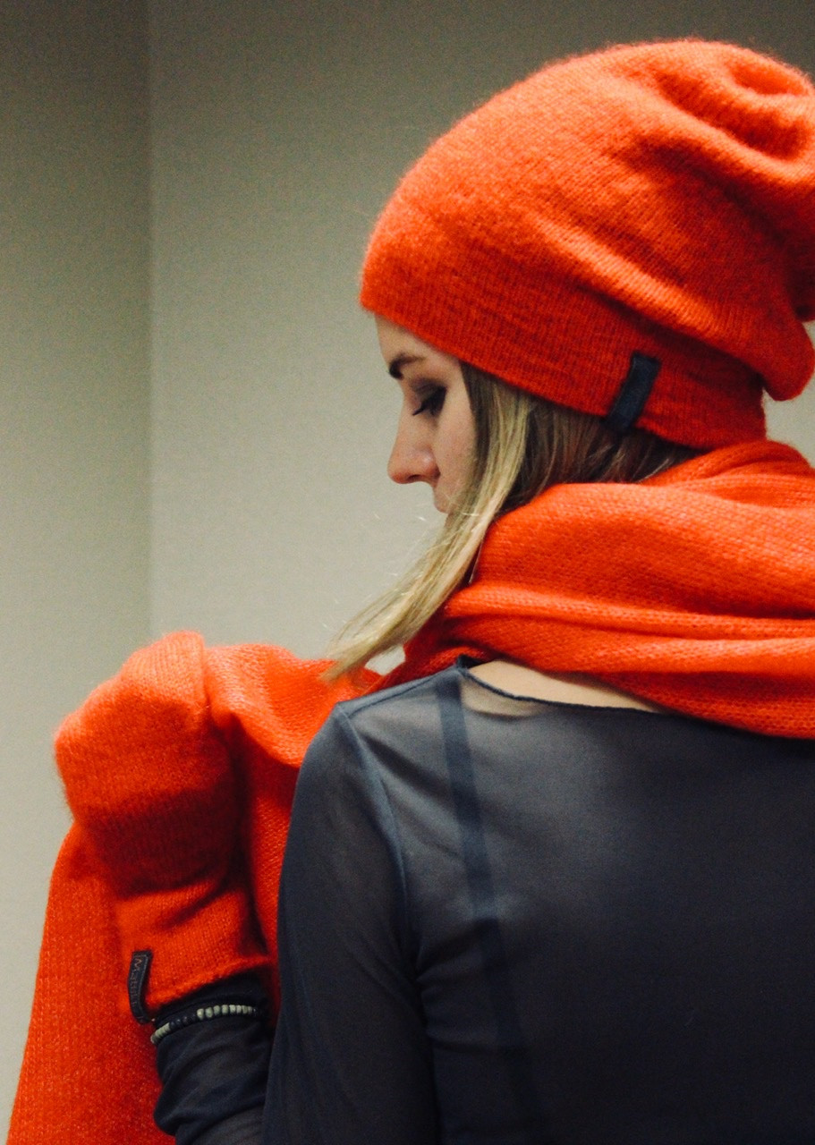 100% dabīgas dzijas sastāvs: kazlēna vilna 75% un zīds 25%. Divas krāsas: iespējami apmēram 50 varianti. Izvēles iespējas pie precēm www.mattilde.lv Universāls izmērs, kas nepieciešamības gadījumā var tikt individuāli koriģēts uz lielāku vai mazāku. Adīts uz ar roku vadāmas mašīnas, apdarināts un satamborēts ar roku.