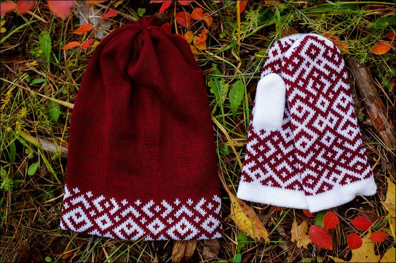 Materiāls: 100% merino vilna Cepure 18.00 EUR un dūraiņi 45.00 EUR - nopērkami arī atsevišķi