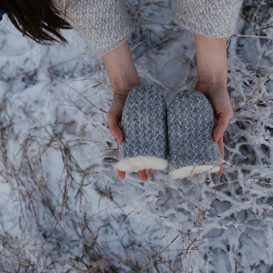 Zīdaiņu dubultie vilnas dūrainīši bez īkšķa. Dūrainīšus iespējams komplektēt kopā ar zābaciņiem.