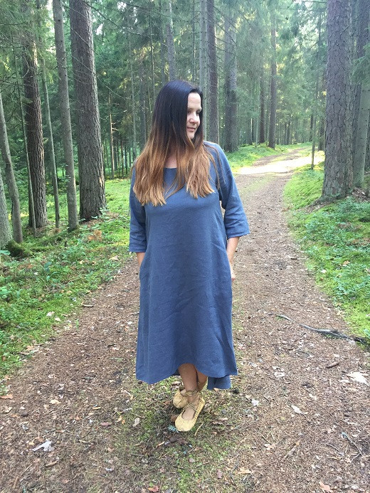 Spēks un skaistums ir vienkāršībā. LIna kleita, kas izceļ sievišķību. Kleitai ir kabatas. Tumši zilā kleita ir pieejama XL izmērā, zilganpelēkā - L izmērā.