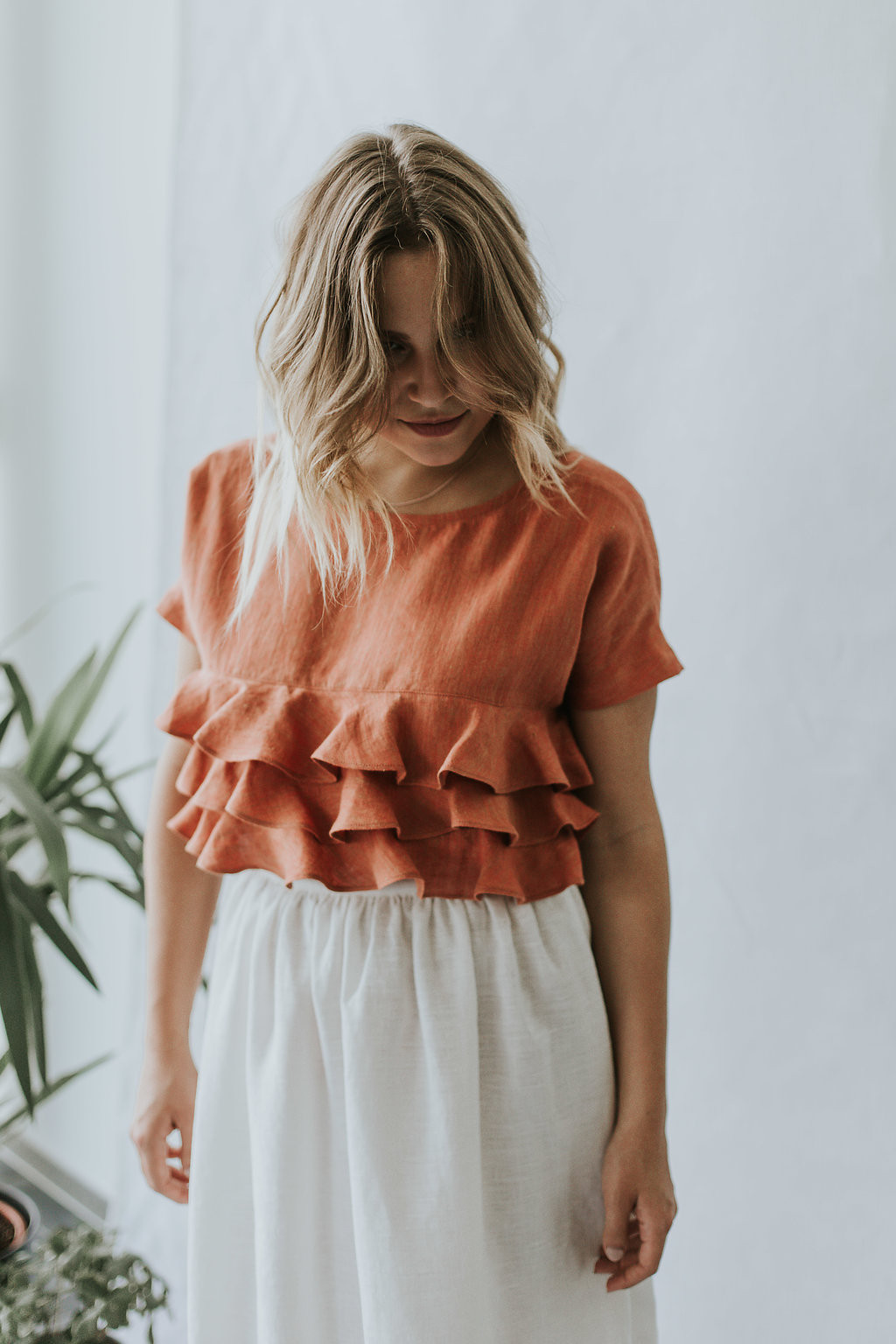 Lina TOPS ar volāniem krūšu daļā piešķirs koķetu un rotaļīgu akcents Jūsu tēlam! ○ Materiāls: plāns, mīkstināts lina audums ○ Krāsa: izvēles iespējas ○ Krāsa dabā var nedaudz atšķirties no foto redzamās ○ Podziņa kakla aizdarei mugurpusē. ○ Garums: ap 63 cm ○ Kopšana: saudzīga mazgāšana veļas mašīnā 40°C, nežāvēt veļas žāvēšanas mašīnā, ja gludināt – tad nedaudz mitru no kreisās puses Mūsu izstrādājumi ir roku darbs. Pasūtīt varat: http://sanpo.lv/lv/store/lina-apgerbs-sievietem/tum%C5%A1i-pel%C4%93ks-lina-tops-ar-vol%C4%81niem-detail