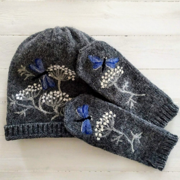 Cepure ar filcētu dekoru (arī komplektā ar apaļšalli un arī sarkanmelna)
