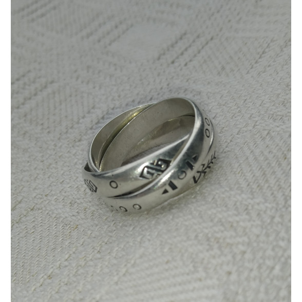 Trīskāršais sudraba gredzens ar latvju rakstu zīmēm